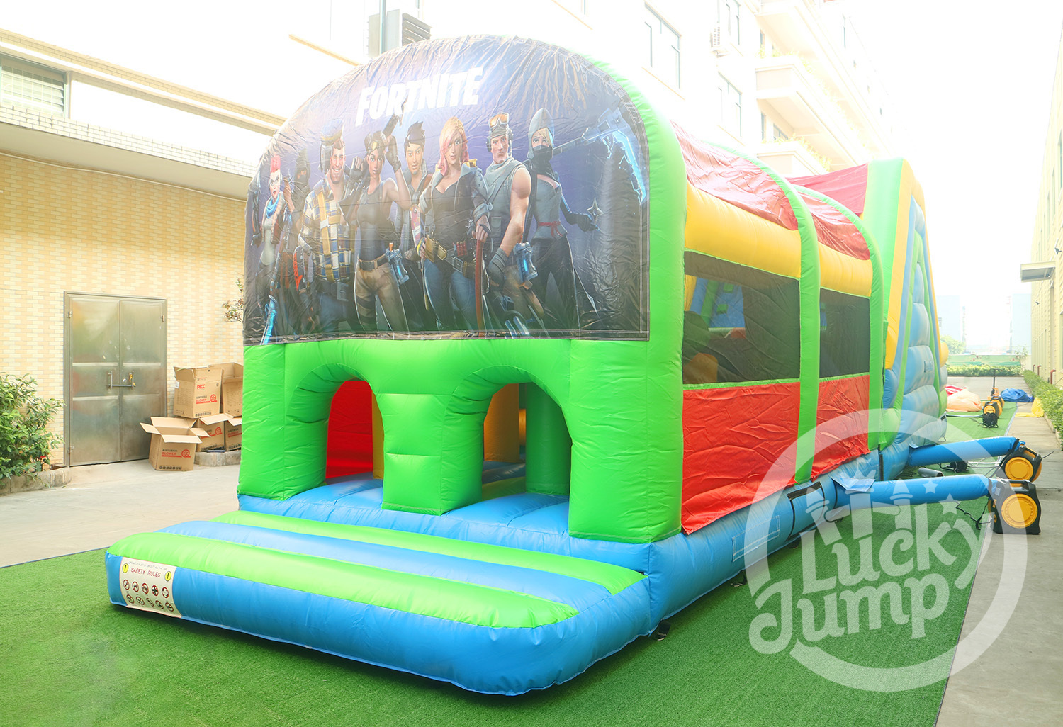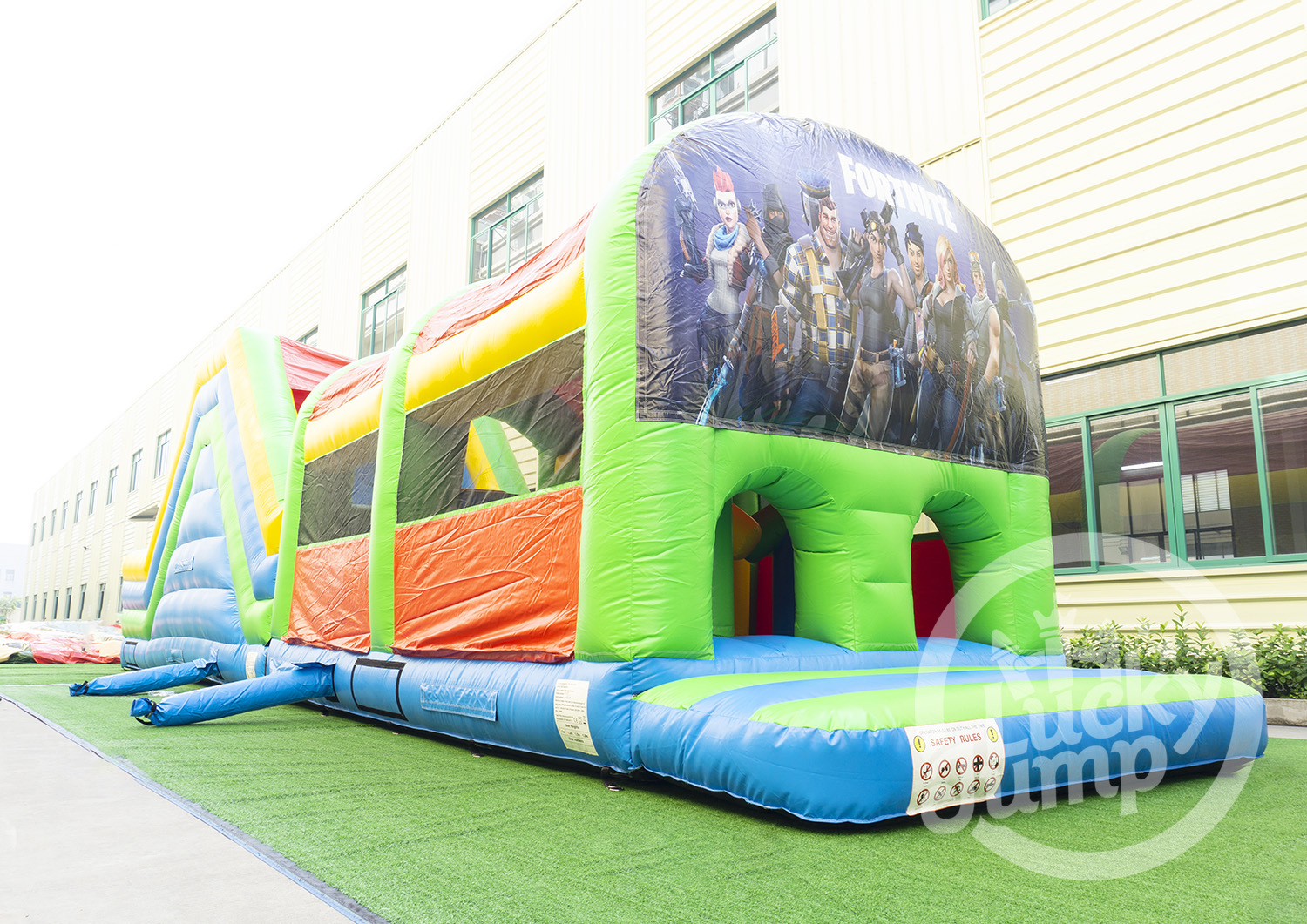Gawing isang epikong pakikipagsapalaran sa labas ang iyong kaganapan gamit ang aming Fortnite Themed Inflatable Obstacle Course. Perpekto para sa mga pagtitipon ng pamilya, mga kaganapan sa korporasyon, o mga pagdiriwang, ang kursong ito ay nagdadala ng kasabikan ng pinakasikat na laro ng battle royale sa mundo sa totoong mundo — nang ligtas at naka-istilong.